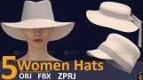5个女士帽子草帽太阳帽模型 5 women hat 3d models (VOl.01)