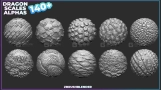 文件信息140个生物鳞片龙鳞皮肤细节Alpha笔刷 140+ Dragon Scales Alphas for ZBrush (Displacement map) vol.4【35.2MB】.7z
