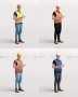 这是一套包含6个身穿工作服、带有不同姿势的3D人物角色模型合集。模型包含完整的贴图材质,并提供了多种文件格式,适用于Cinema 4D、Blender、3ds Max等主流3D软件。