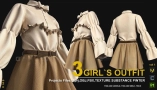 该产品为女孩的服装 VOL 1,包含适用于CLO3D、Marvelous Designer和Substance Painter的模型与纹理资源。产品提供了多种格式的3D模型文件和高分辨率纹理,并附带了原始的服装设计项目文件,便于用户进行进一步的编辑和调整。