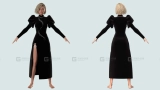 这是一个高多边形女装模型,采用A姿势呈现。模型基于Clo3D或Marvelous Designer软件制作,提供OBJ格式文件。该模型为三角形几何结构,未进行重新拓扑优化,且不包含纹理贴图。