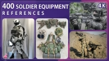 本产品包含400个士兵装备参考,旨在为使用3ds Max、Blender等3D软件或Substance Painter软件的用户提供高质量的设计灵感和资源支持,尤其适合在3D软件操作方面受限的创作者。