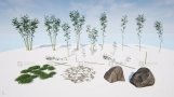 这是一套用于创建热带森林的竹子植物资源包,包含多种竹子模型、草地和石头模型。资源经过优化,适用于PC游戏项目,支持Pivot Painter 2.0动画和简单风力动画,并包含多个细节层次(LOD)。