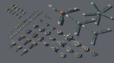 本资源包是“机甲建造者”系列的一部分,可与“蜘蛛与坦克”、“人形机器人”、“炮塔”及其他资源包扩展使用。纹理匹配,且大部分部件可互换。包含超过300个不同的模块,可用于创建飞行器、陆地载具和宇宙飞船的多种组合。演示关卡包含35个组装好的单位。每个单位的多边形数量在4000到8000个三角面之间。