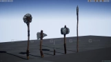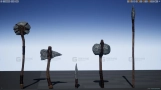 这是一套包含五件低多边形风格化原始武器的资源包,内含一把斧头、一把刀、一根长矛、一把锤子和一把圆斧。资源针对虚幻引擎开发进行了优化,包含LOD和自动生成的碰撞体。