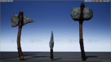· 包含5件低多边形武器模型:斧、刀、矛、锤、圆斧。