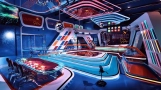 · 动态元素:包含带有旋转蓝图的迪斯科球和迪斯科聚光灯。